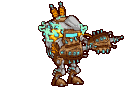 The Brew Golem keeps a few batches at the ready, and chucks them hapazardly at injured golems, healing every robot lucky enough to be caught in the splash. And if an enemy happens to get too close to the Brew Golem, it can release all of the pressure it has built up, buying you some time to get your defenses reassembled.